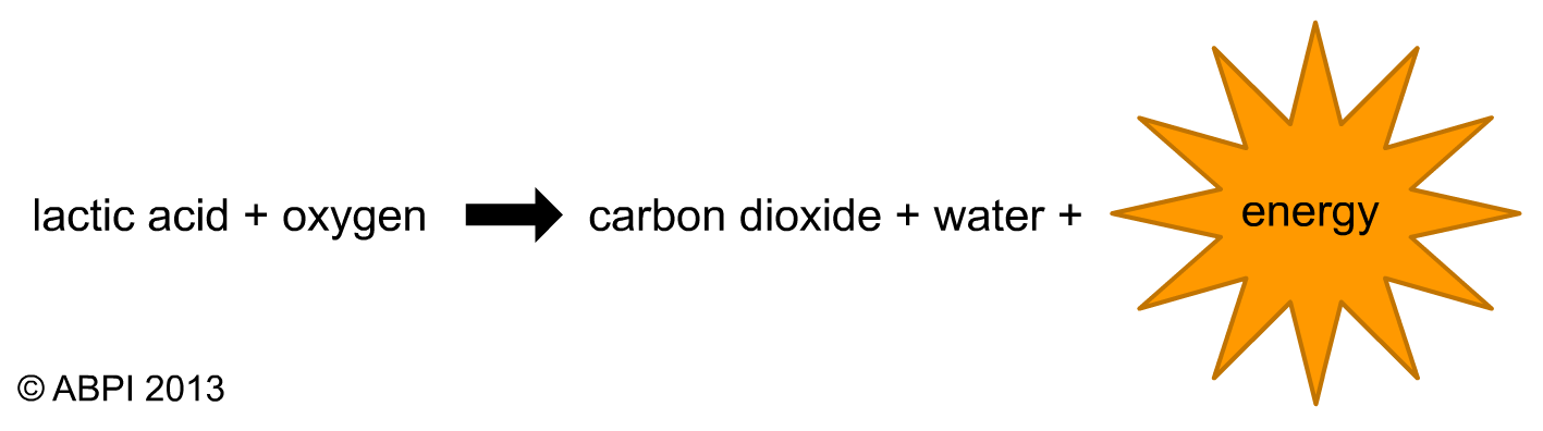 Once the oxygen concentration in the cells goes up again, the lactic acid is broken down in aerobic respiration to produce carbon dioxide, water and more ATP.