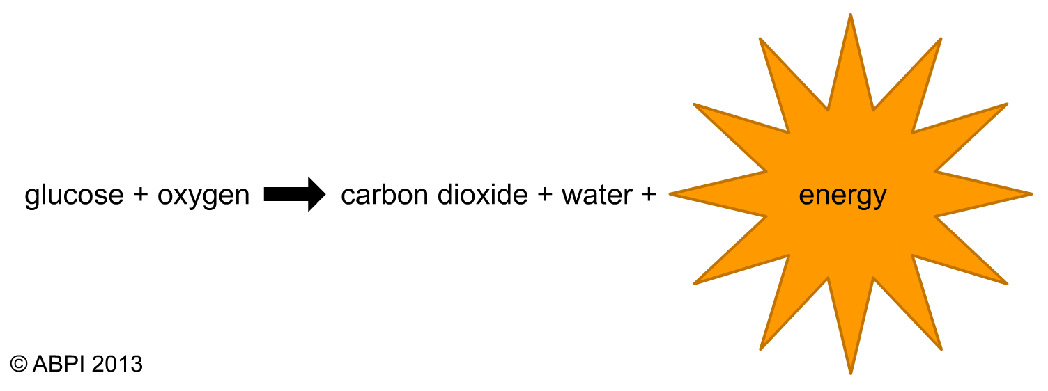 C6H12O6 + 6 O2 → 6 CO2 + 6 H2O + energy (ATP)