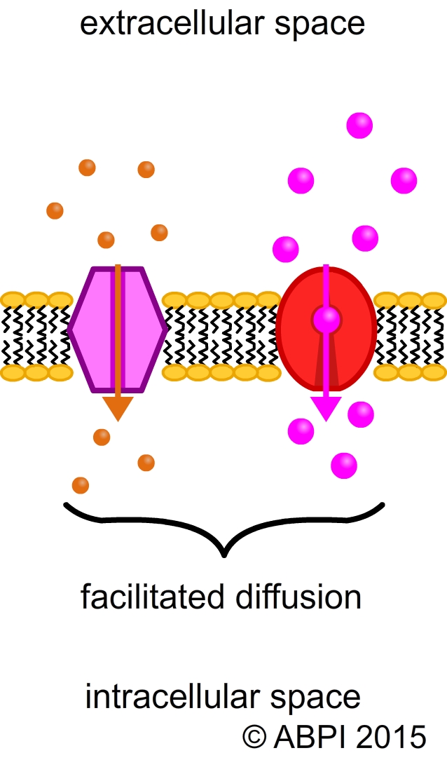 Animation showing diffusion, facilitated diffusion and osmosis across a cell membrane: