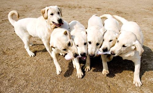 These six dogs were all cloned at Seoul National University from one outstanding Canadian sniffer dog called Chase. They all have great abilities for sniffing out drugs and explosives.