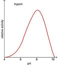 The pH of the environment has a major effect on the rate of enzyme controlled reactions. The intermolecular bonds – particularly the hydrogen bonds – that maintain the tertiary structure and the active site are very vulnerable to changes in hydrogen ion concentration. Each enzyme has an optimum pH at which it works at its optimum rate. A change in pH causes a change in the shape of the active site. It is not so easy for the reactants to fit in and bind to the active site. The activity of the enzyme is reduced and the rate of reaction slows. If the change is too great, the substrate will not be able to bind to the active site at all and the enzyme can no longer catalyse the reaction. In most cases the activity of the enzyme is restored as the pH returns to its optimum level.