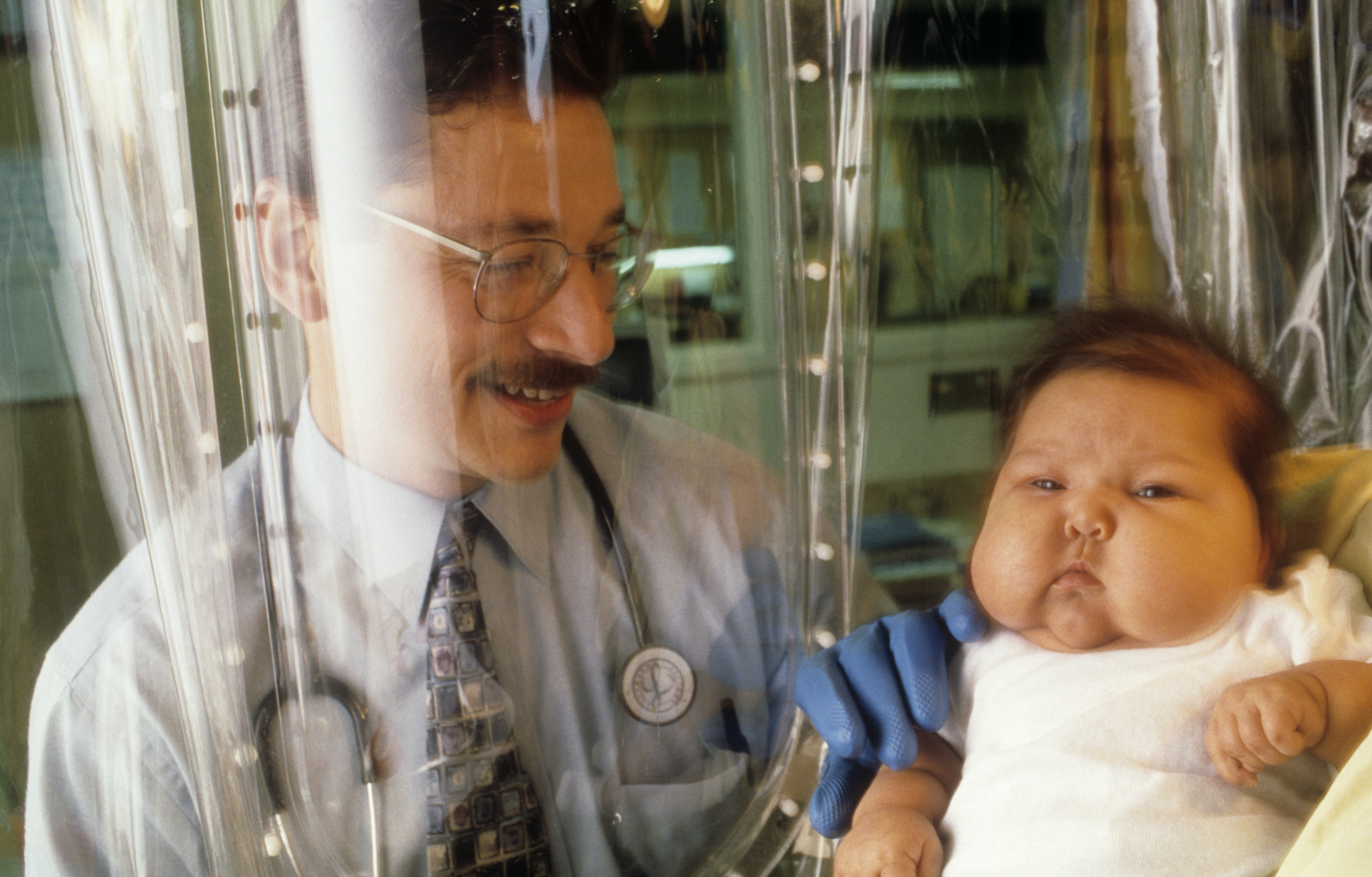In the past, the only way of keeping these children alive was to bring them up in a completely sterile environment, with all their food, water and air sterilised and with no direct contact with other people. Even then, affected children rarely lived into their teens as the slightest contamination could kill them.