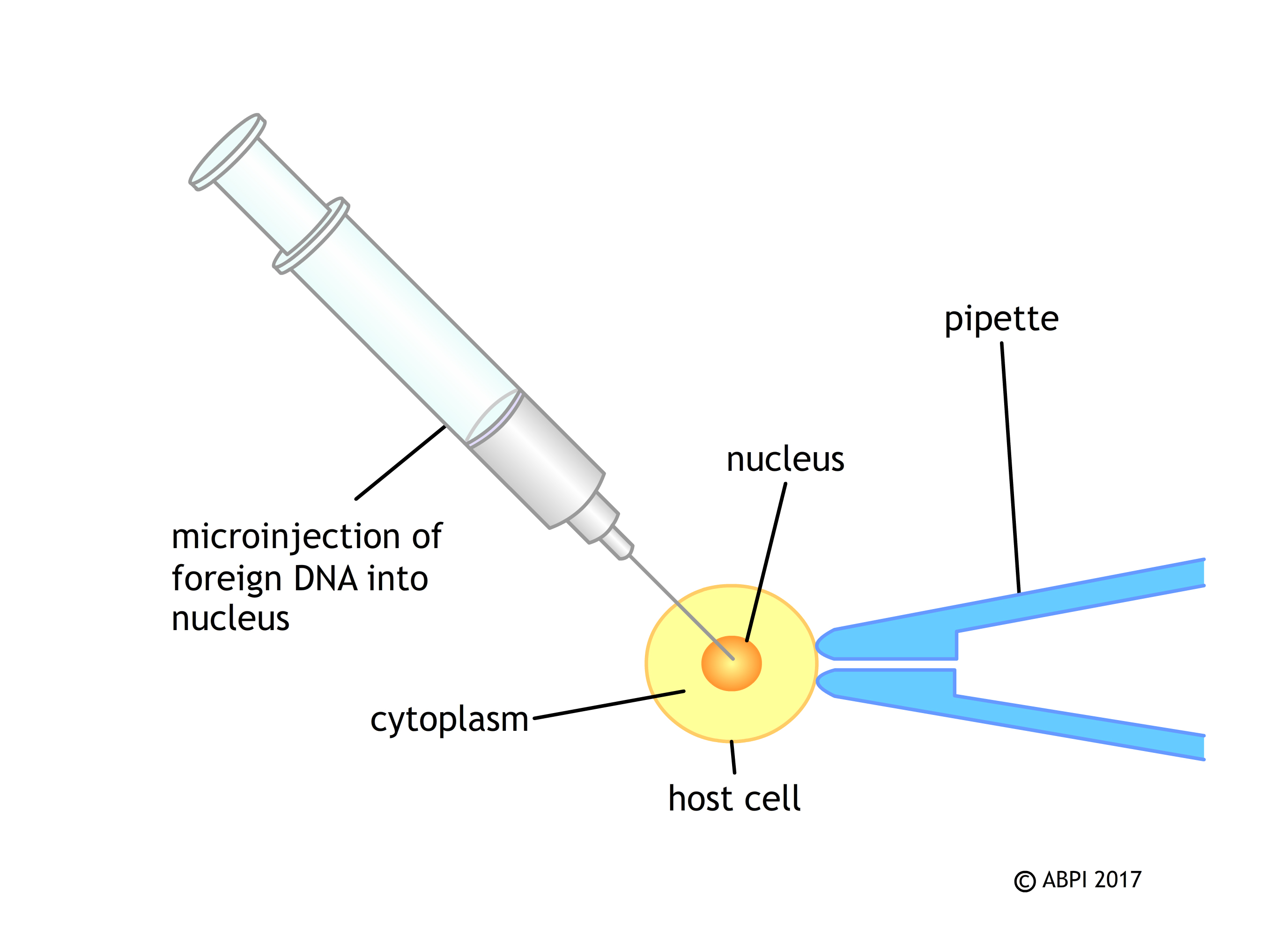 In microinjection the new DNA is introduced directly into the nucleus of the cell to be modified.